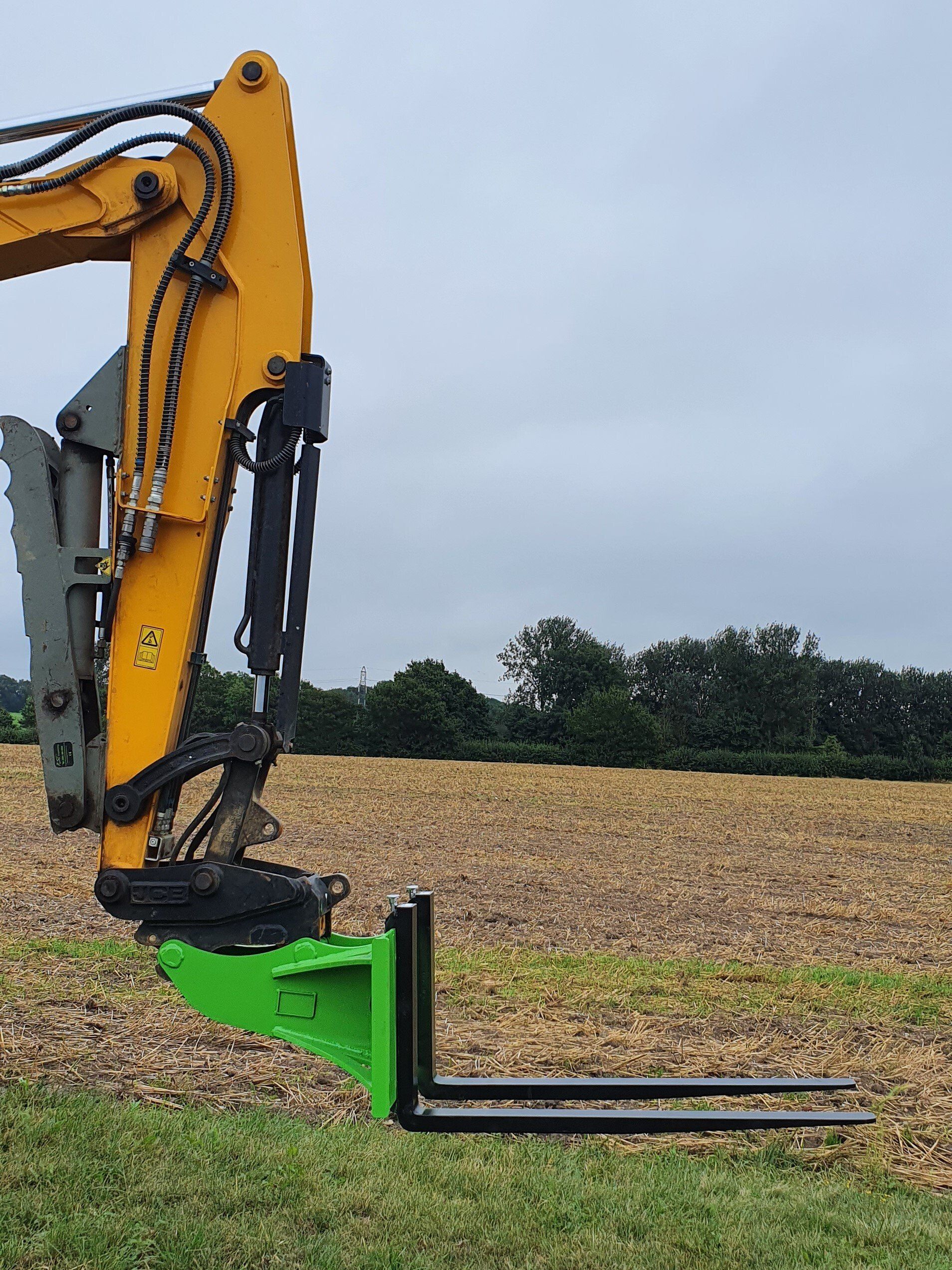 Pallet forks for excavators are an extremely useful way of moving materials on site especially when the going gets tough. We can manufacture fork carriages for any size excavator. The carriages have a castellated top bar allowing the forks to be fixed in a multitude of widths. We can also manufacture carriages for telehandlers. Theses carriages can be specified with an "overgrab" allowing objects such as trees to be clamped. We also manufacture pipe clamps. A client came to us with an issue. They were working on a site where health and safety was tight. No one was allowed onto the load bed of the lorry to strap or sling the large pipe. We came up with a way to handle and clamp two pipes but also of varying sizes from 300mm to 750mm without the need to manually adjust the carriage. The twin clamp arm automatically by way of hydraulic valves adjusts to single or double pipe irrespective of size. The carriage also has a 2m wide adjustable fork stance to cope with long lengths safely.