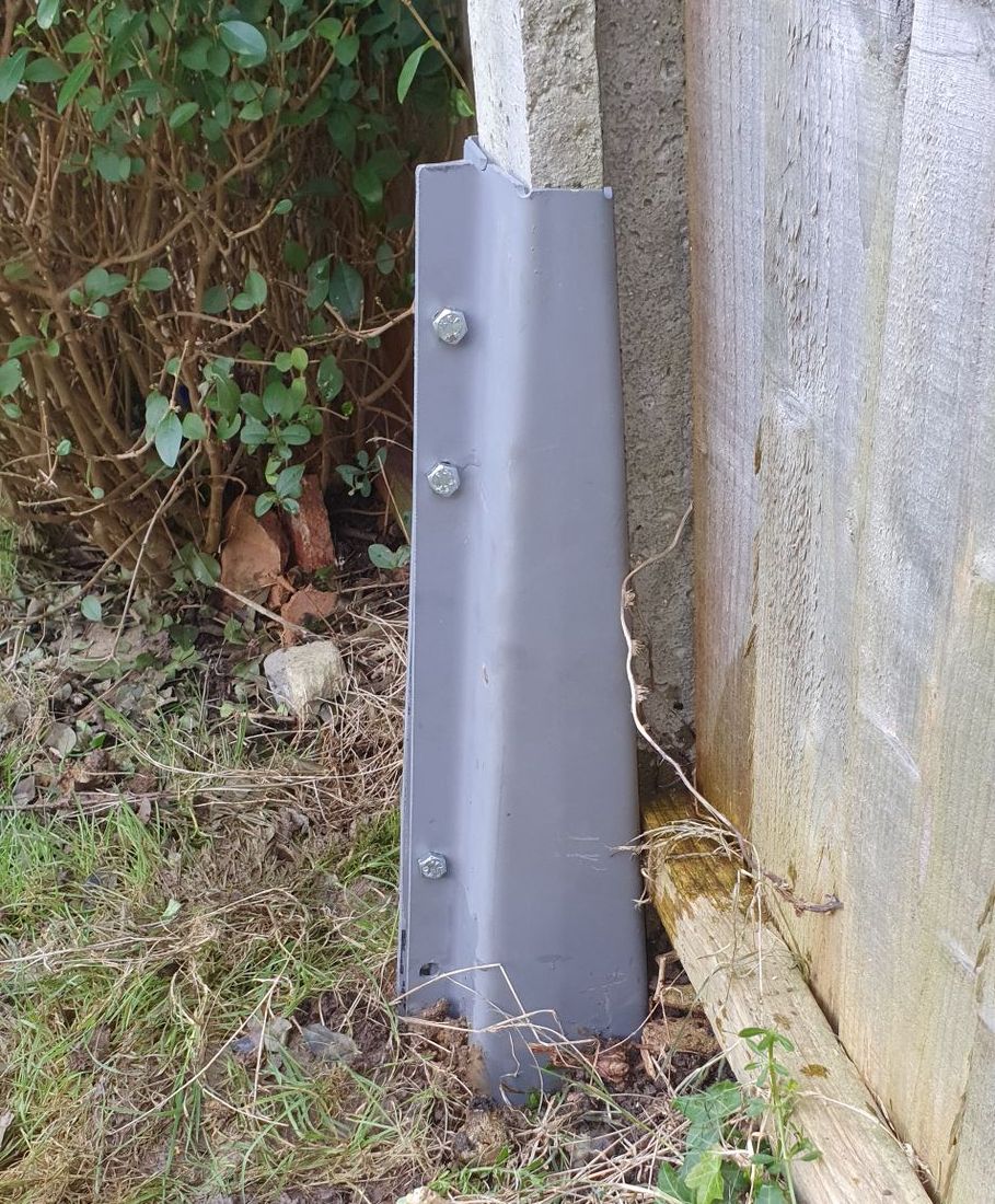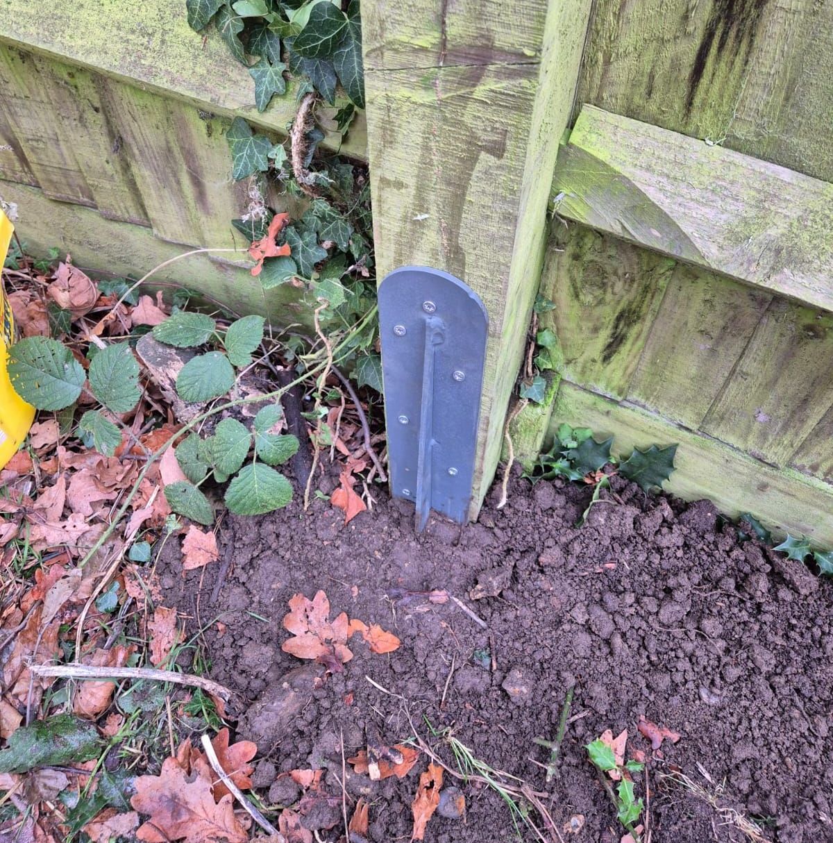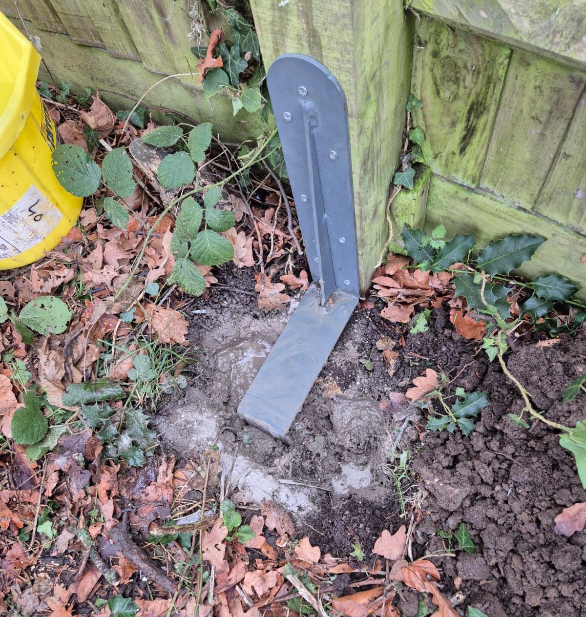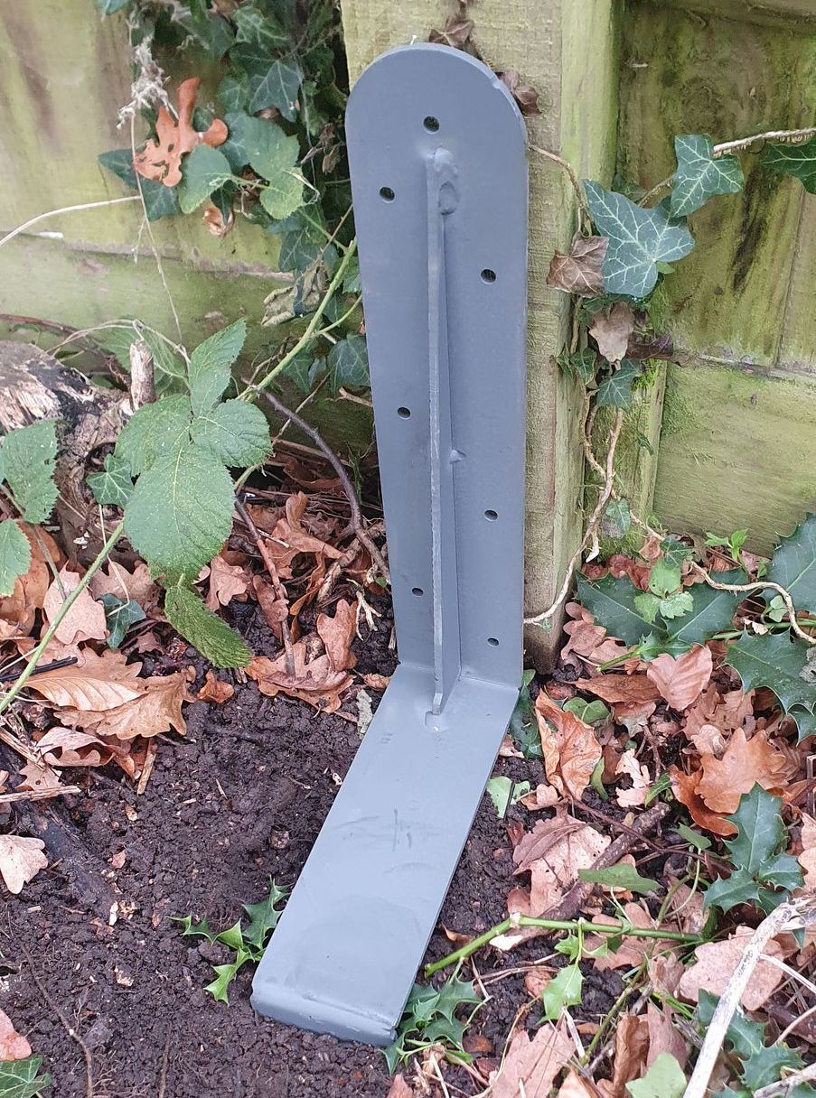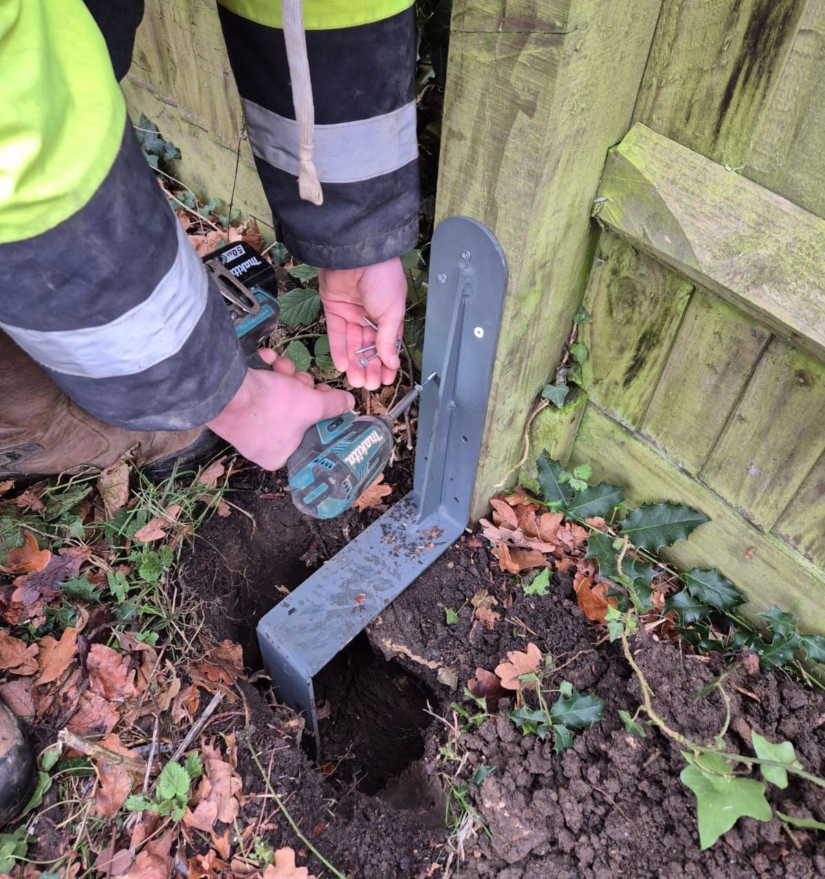- Concrete in version (simply dig a hole, screw the repair brace to the post and backfill with concrete or postcrete)