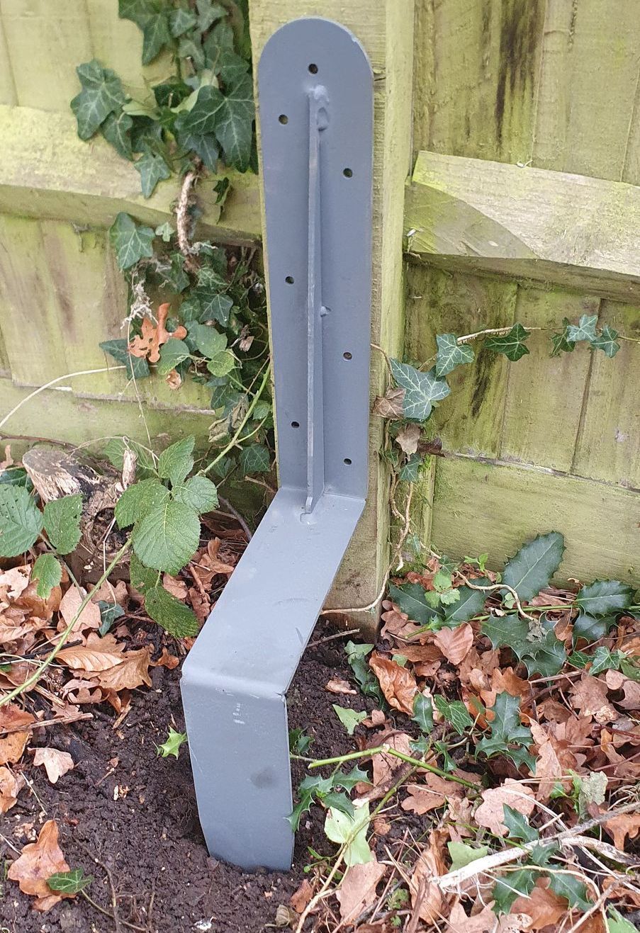Simply remove a small section of soil where the horizontal part of the spike will sit. Line the spike against the post and knock into the ground. Screw the spike to the post with the screws provided and cover the horizontal section with soil for a very tidy finish